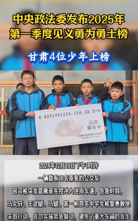 因为这四位少年的英勇,中央政法委给他们发了奖,夸他们是见义勇为的好榜样。他们的故事让好多人都特别感动。就像网友们说的,他们不只是救了一车人的命,更是用实际行动告诉大家什么是真正的“全面发展”。